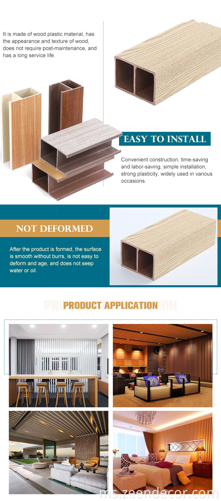 WPC Siling/WPC Siling Luar/PVC Square Exterior Timber Tube/WPC Baffle Siling/Modern Interior TTile Siling/PVC Filem Siling/Reka Bentuk Baffle Siling/Kayu Komposit Komposit Kayu